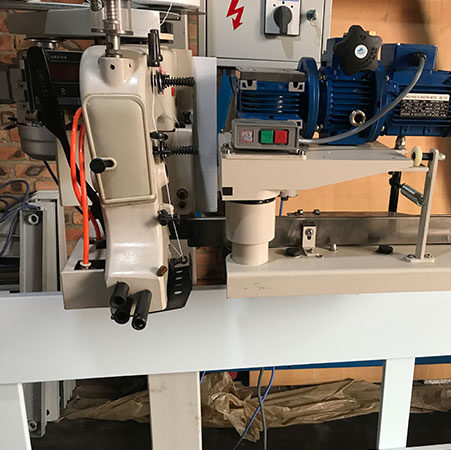 You can make up a complete set as you like for example LFS2500+QG4900+(GK35-6A) which is constituted by a 2.5m conveyor, GK35-6A sewing head, QG4900 bags infeed, a column and its control box.