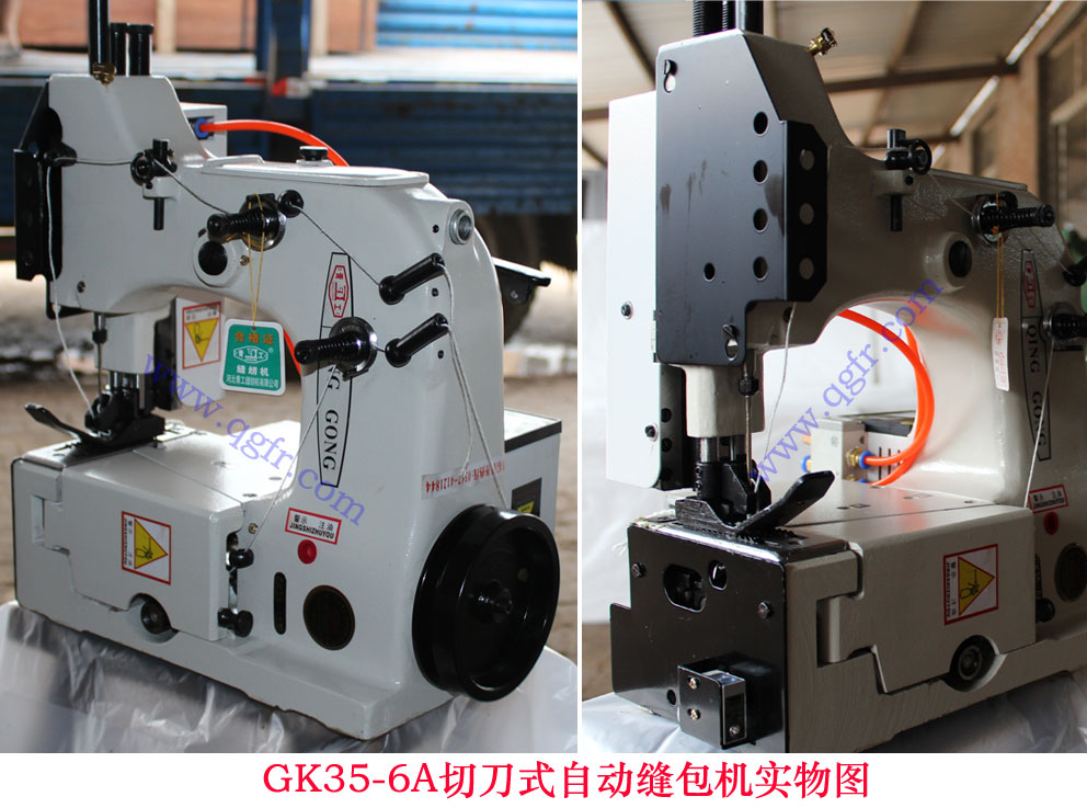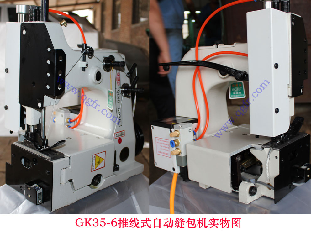 c.GK35-6AF型反方向自動(dòng)縫包機(jī),在GK35-6A自動(dòng)縫包機(jī)基礎(chǔ)上開發(fā)的一種新型反方向縫包機(jī)。該機(jī)可以與GK35-6A型正機(jī)相配合,在同一立柱上在兩側(cè)同時(shí)縫合袋口。