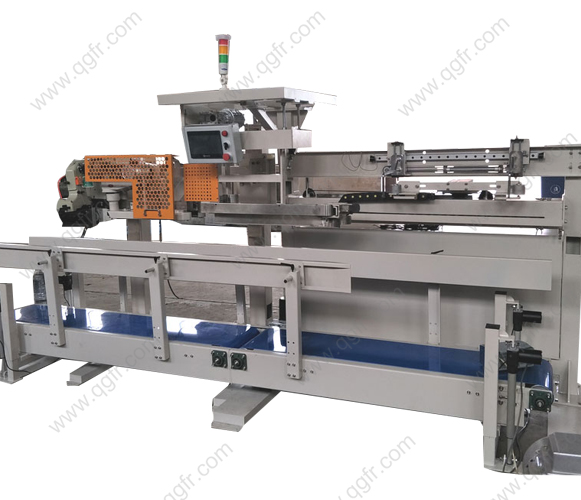 本機適合灌裝包裝袋袋口寬度為400-650毫米、高度為550-1050毫米的顆粒、粗粉狀物品的自動化包裝。自動完成開口加壓、袋夾緊、袋封口、輸送,折邊、送標簽、縫包等動作,省人工,效率高,操作簡單,性能可靠,是對自動化水平要求較高的廠家完成編織袋、紙塑復合袋等袋口縫合作業(yè)的關鍵設備。