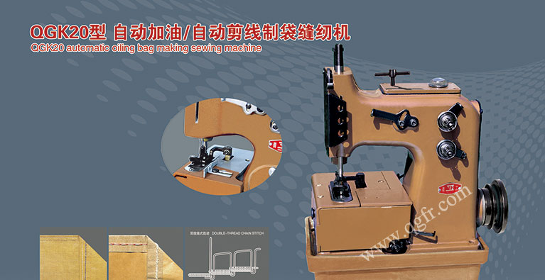 GK20-2和GK20-2F型配置有氣動切刀,可以配備在自動縫底機上實現(xiàn)編織袋的自動縫底、縫口、自動切線等。GK20-2F為反方向機型。
